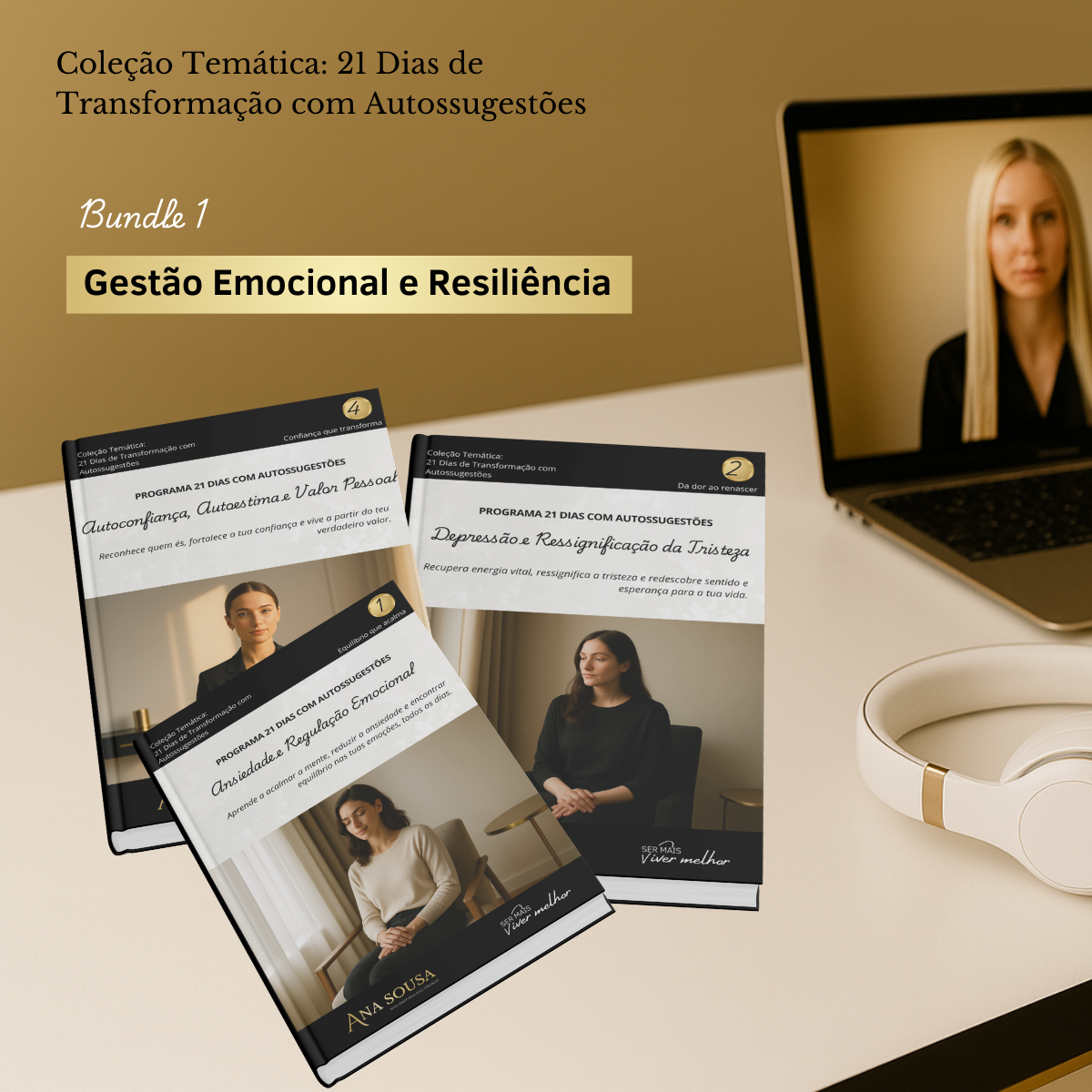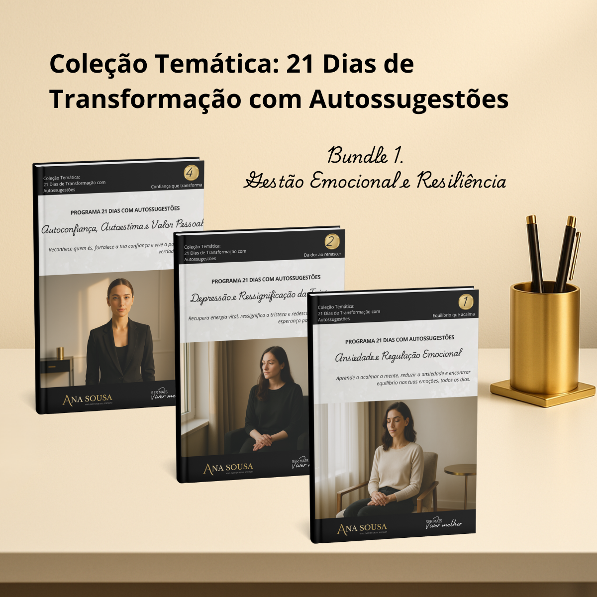 Este bundle reúne 3 programas criados para quem sente que as emoções estão no comando, vive desgaste emocional, e precisa de reencontrar equilíbrio e força interior. A ansiedade, a tristeza persistente e a falta de confiança drenam energia e dificultam relações, decisões e bem-estar.